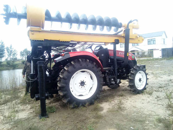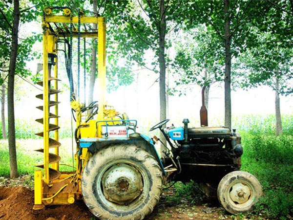 操作:拖拉機(jī)液壓起落裝置控制鉆桿提鉆;拖拉機(jī)行走對(duì)準(zhǔn)坑穴;拖拉機(jī)動(dòng)力輸出軸輸出旋轉(zhuǎn)動(dòng)力。